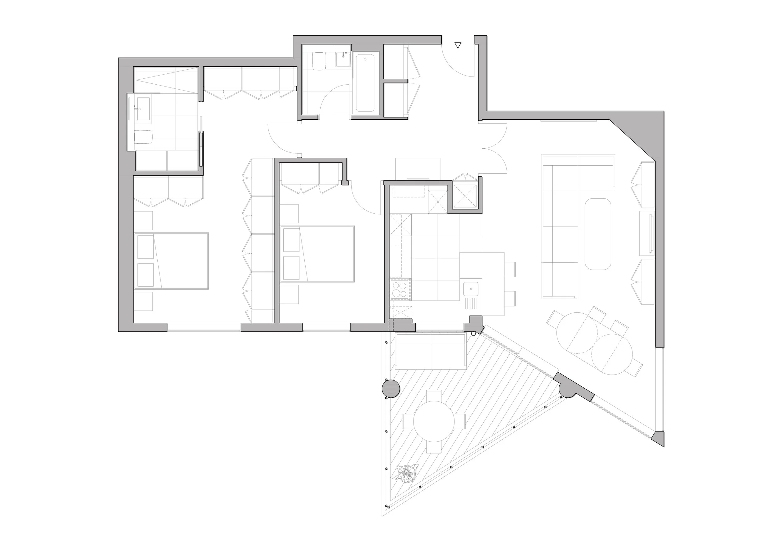 This 2 bedroom apartment is located in the heart of Hammersmith. The client asked us to provide some ideas on how to modify the living area and add more storage space. The design team delivered several options and, together with the owner, landed on this design, where the kitchen and living area are merged to enjoy a more flexible spac, enjoying views towards the Thames.